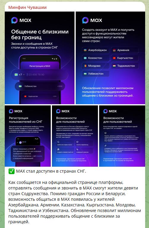 Министерство финансов Чувашии вслед за Минобразованием также начало рекламную кампании по продвижению мессенджера Max, опубликовав в своём официальном канале идентичный текст. Сообщения снова касаются «доступности Max в странах СНГ» и его роли в «борьбе с мошенниками».