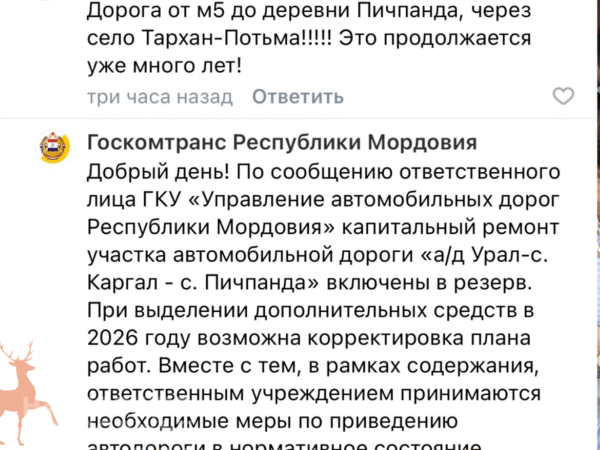 Жители Зубово-Полянского района Мордовии жалуются на дорогу от трассы М5 до Тарханской-Потьмы: она без асфальта, вся в кочках, и находится в таком состоянии уже несколько лет. Власти годами игнорируют просьбы жителей и отчитываются о приведении дороги в нормативное состояние…