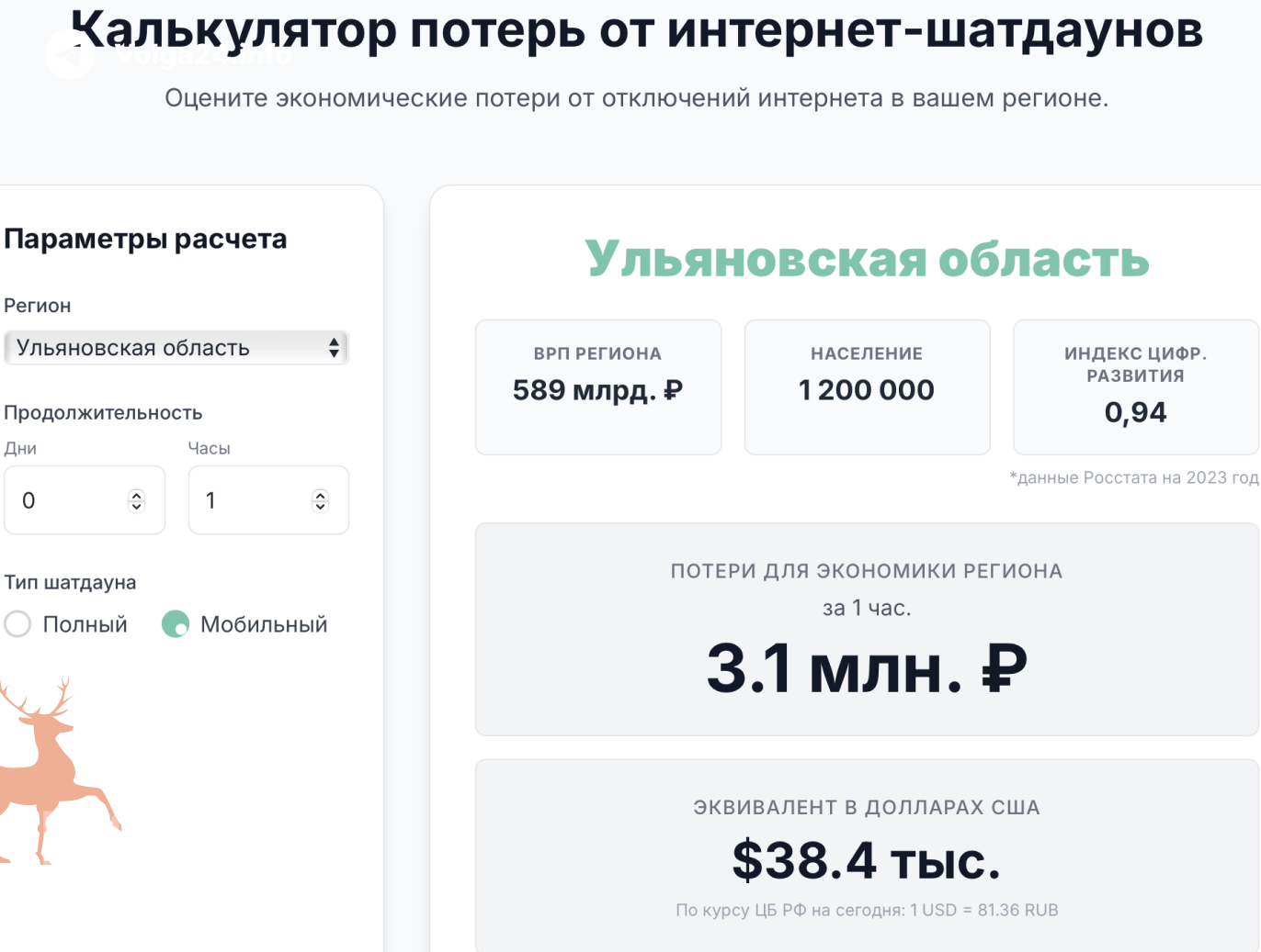 Калькулятор потерь от интернет-шатдаунов рассчитал, что экономике Ульяновской области обходится в 3,1 млн рублей один час без мобильного интернета. Если Читать далее